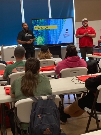Santrell Carson and Brayton Sparrow from Operation Lifesaver talked to the NHS Driver Education class on the dangers associated with the railroad. They stressed the importance of being both safe drivers, and pedestrians when it comes to railroad safety.